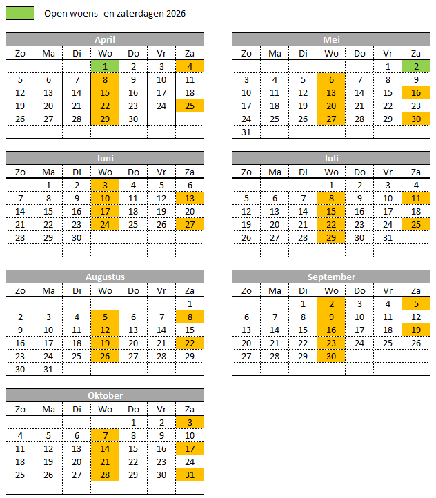 - Om de 14 dagen op zaterdagmiddag van 13.00 tot 17.00 uur