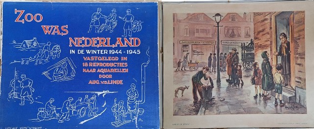 Zoo was Nederland in de winter 1944-45 vastgelegd in 18 reproducties van Aquarellen door AUG v.d. Linde.